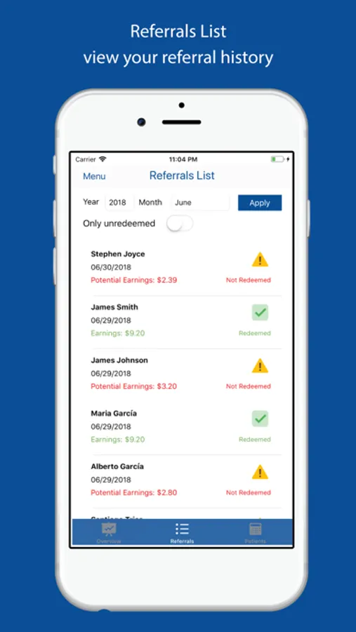 For each referral redeemed by the patient, earnings are generated to the referring dental professional (individual or office).