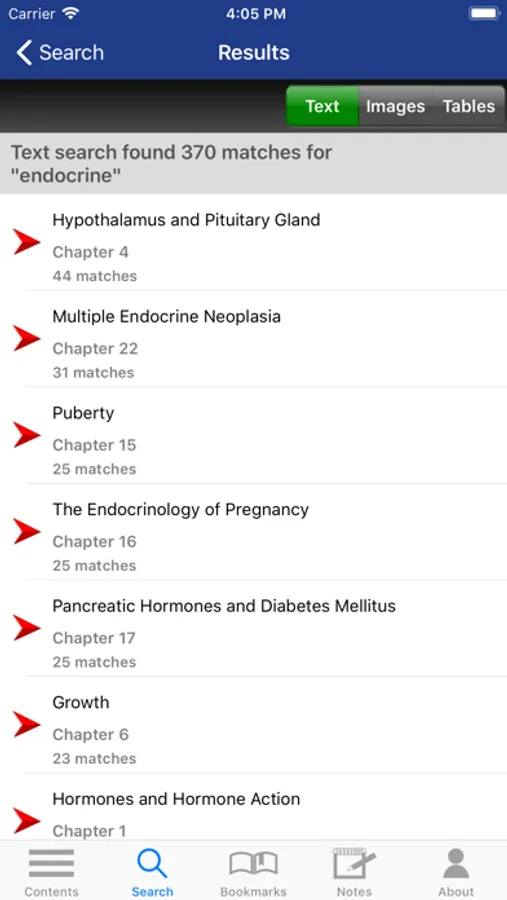 This app is easy to navigate, allowing you to browse the contents or search for topics. The search tool shows you suggestions that appear in the text as you type so it is quick and helps with spelling medical terms. It also remembers past search terms so you can go back to a topic or image very easily. You can also create notes and bookmarks separately for chapters and images to enhance your learning. You can also change the text size for easier reading.