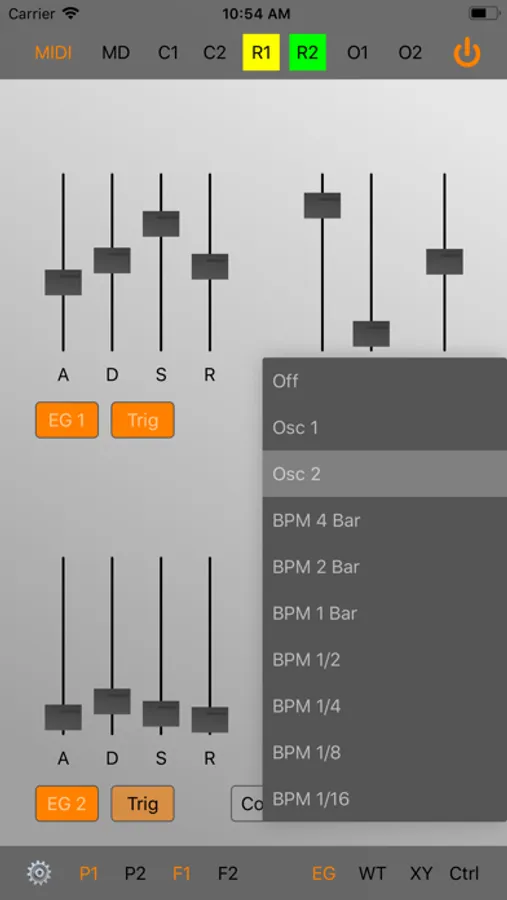 MIDI Keyboard control of an oscillator’s frequency allows you to play notes and use this app as an additional sound source in VCO mode