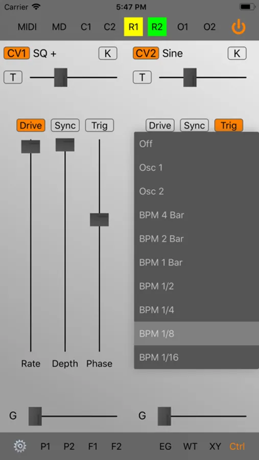 CV Mod is a 2 LFO/VCO Oscillator Module meant to be used with modular or semi-modular synth hardware. Simply connect the headphone output of your iPhone or iPad to one or more CV or audio inputs on your hardware.