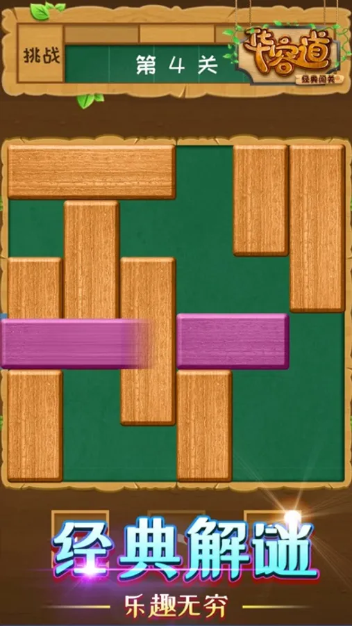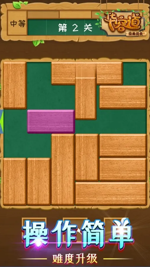 经典的解谜游戏——华容道!传统的智力游戏,简单的游戏模式,丰富的关卡设计。方块的横竖移动就是这游戏最大的乐趣,看似简单关卡会让你进退两难。适合所有年龄段玩家,放松生活,开发头脑,华容道经典闯关是您最好的选择。