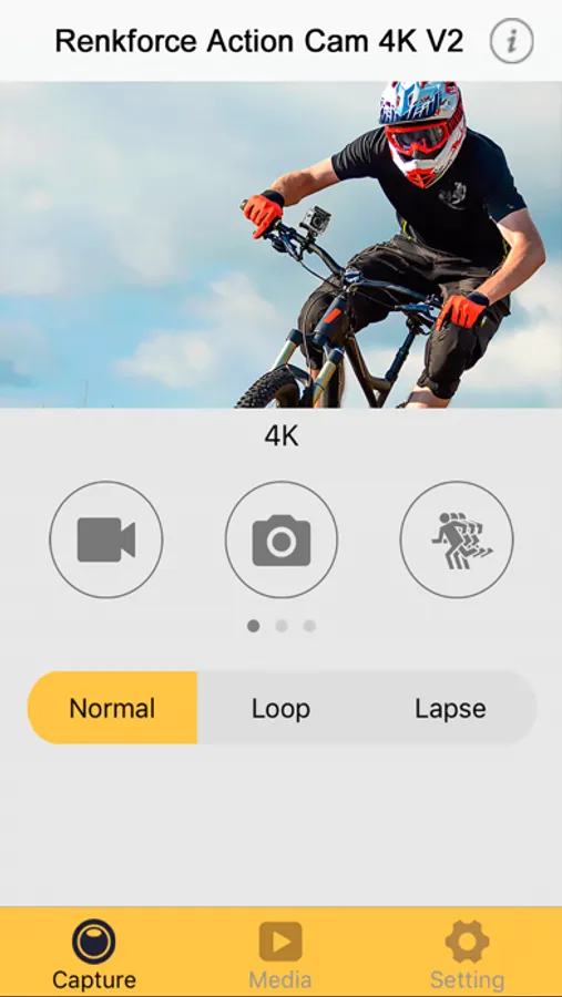 The Renkforce Action Cam 4K V2 app allows you to view real-time footage while using Wi-Fi-enabled action cameras. Through the app, you can: