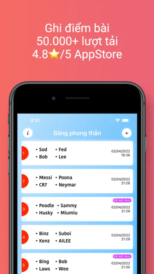 Hãy bỏ ngay việc mang theo giấy và bút khi chơi bài tiến lên các bạn nhé, với ứng dụng ghi điểm bài mới này, việc ghi điểm tiến lên sẽ trở nên nhanh chóng và tiện lợi.