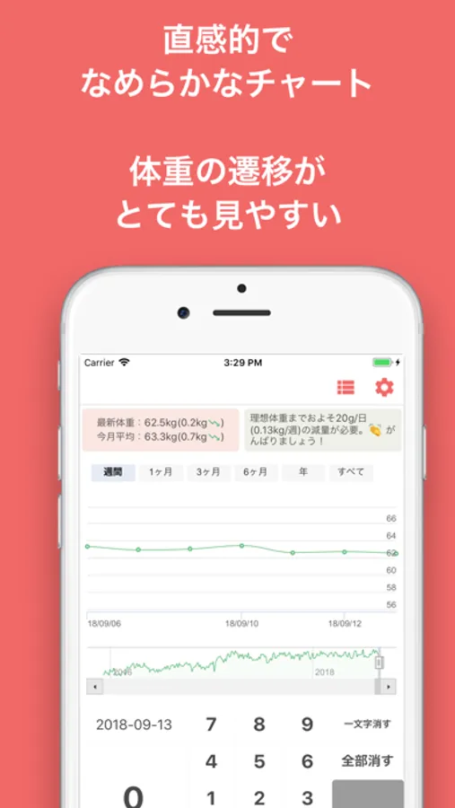 過去X日の平均値と比べることによって、最近太りつつあるのか痩せつつあるのか一目瞭然です。