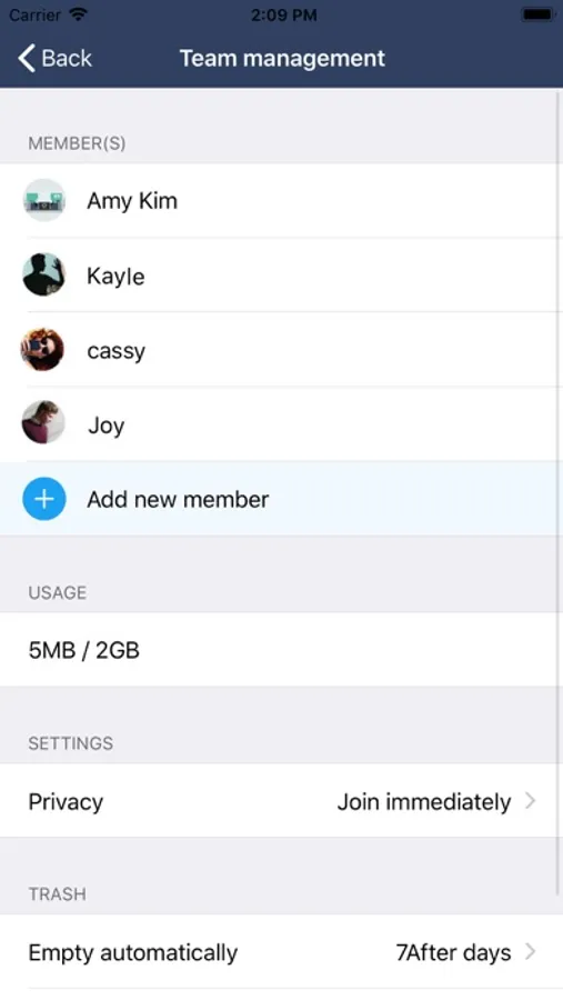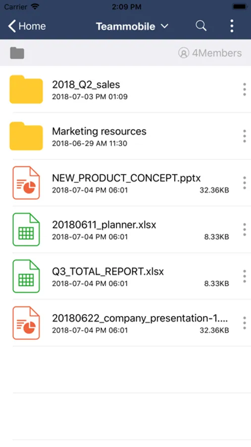 *Team folder: Share files with others through shared folder called Team folder! Simply enter a team name to create your team folder with free 2GB storage space. Invite team members and allow them to access shared folder freely.