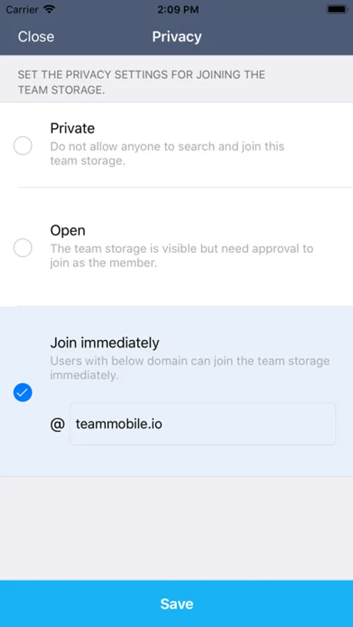 *Strong privacy settings: You can open your team folder in public or set as a private. An invitation feature and auto-email verification (Automatically allows people with a certain email domain) help you to invite team member more precisely.