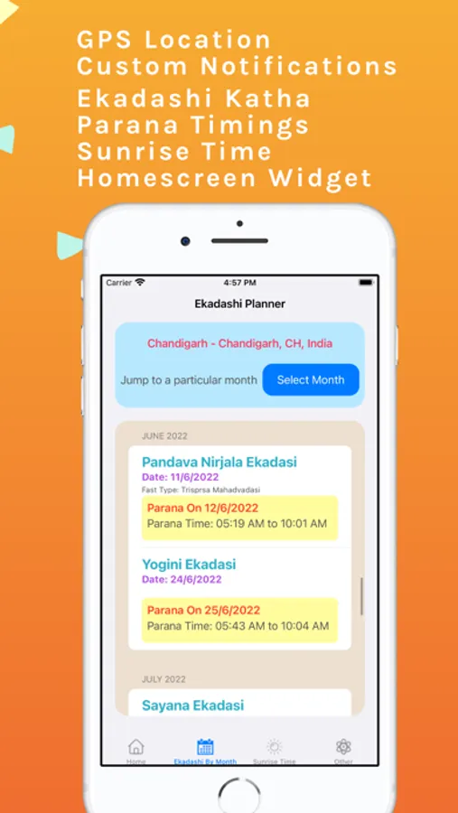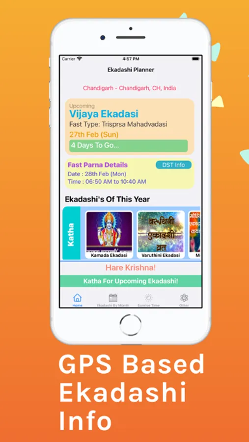 *The app is designed to show the Upcoming Ekadashi Vrat Observing date & Parana timings as soon as you open the app.