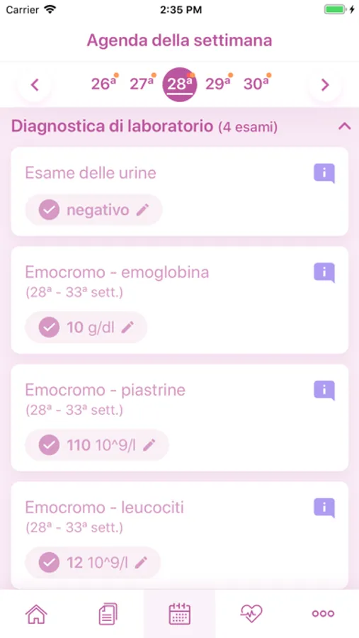 - un’agenda ideata specificatamente per le esigenze della gravidanza, in cui potrete registrare i dati e i risultati delle visite mediche e dei controlli che man mano effettuerete