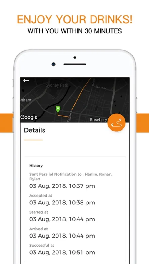 Alcohol delivered on-demand to your door, in an average of 30 minutes.