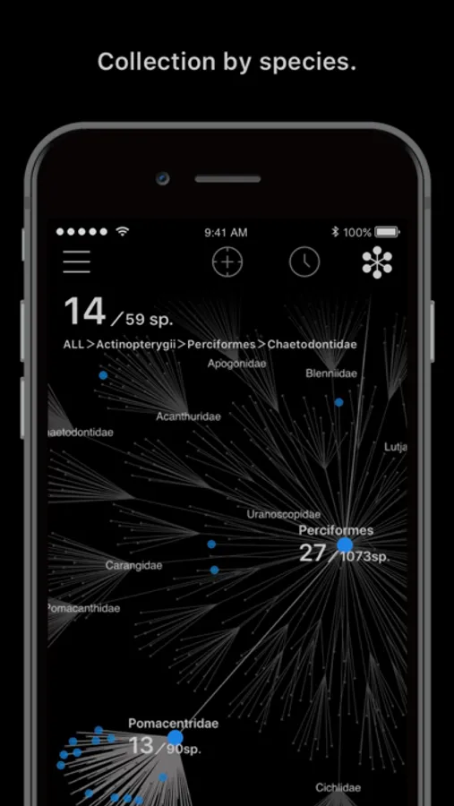 LINNÉ LENS creates phylogenetic tree covering organisms found using the app. These organisms are recorded automatically allowing you to discover surprising connections between them.