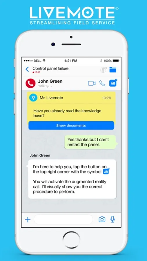 Livemote is designed with an instant messaging like interface that simplifies maintenance operations management by harnessing a commonly used logic.