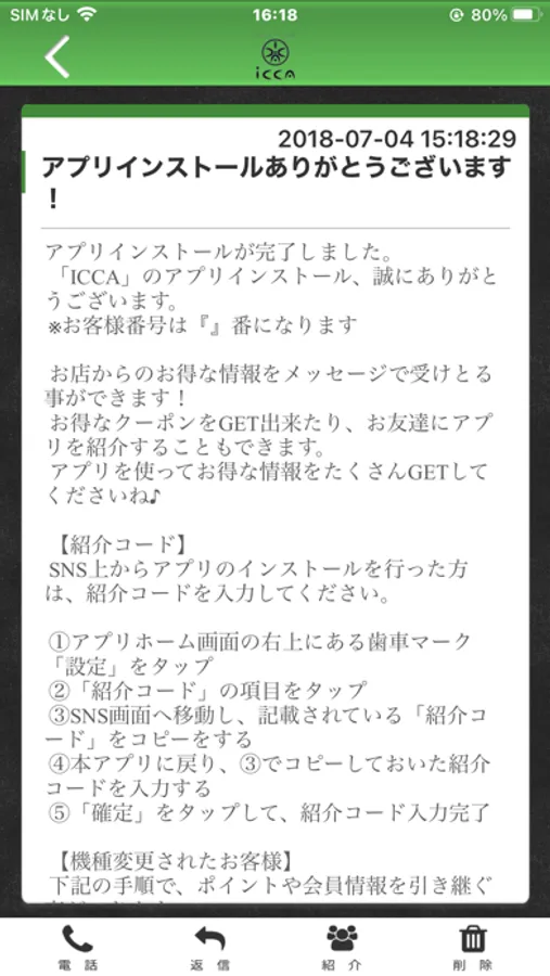 ICCAのアプリをSNSを通じてお友達に紹介する事ができます。