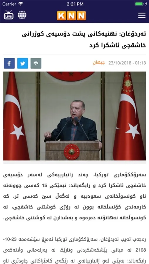 KNN has a network of correspondents throughout Kurdistan and Iraq, as well as permanent local offices in Irbil (Hawler) and Kirkuk. And also has an office in Istanbul, Turkey.