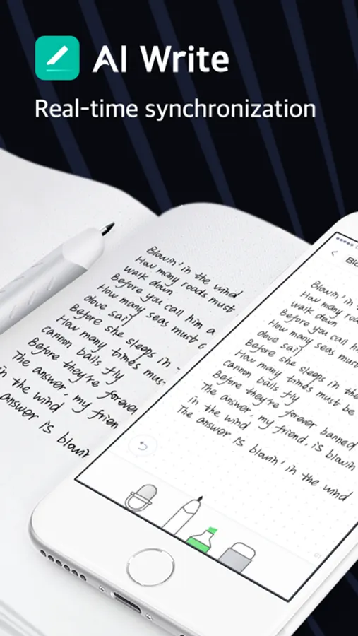 AI Write are exclusive to the AI Write smart writing set. It can be used to record your inspiration, meeting minutes, essays, graffiti, and endless possibilities. Everything you record will be synced to the app in real time. AI Write supports intelligent recognition of handwritten content as text, easy to edit, is a good helper in your work, study and even life.