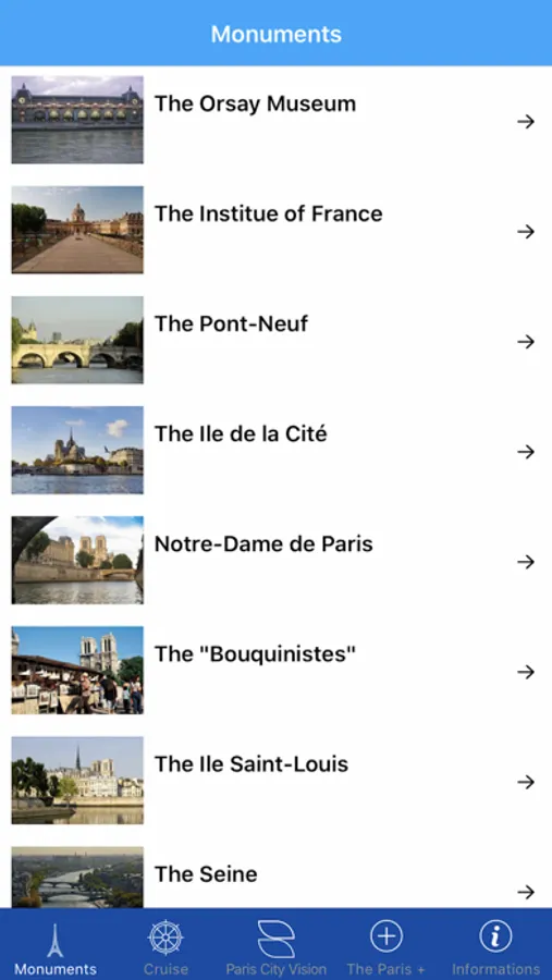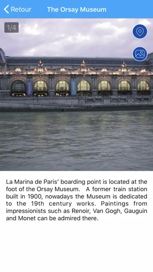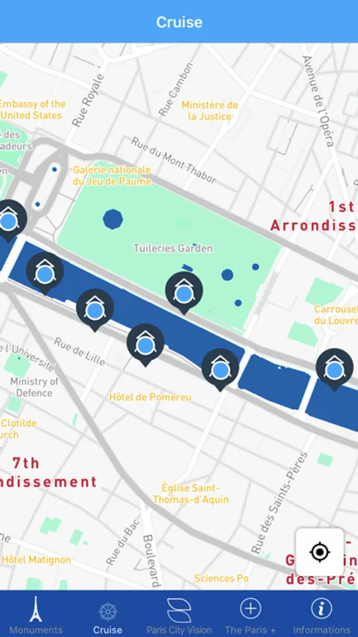 For the Curious, press the “Monuments” button and discover at you own pace the wonders scrolling along the Seine. Each monument is illustrated with HD pictures and an informative paragraph so that you can spot it and know more about its history.