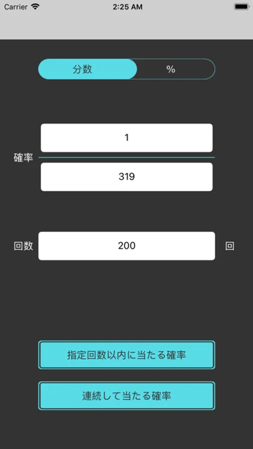他の確率計算アプリによくある、入力場所がよくわからないということもこの「確率計算機」アプリではありません。