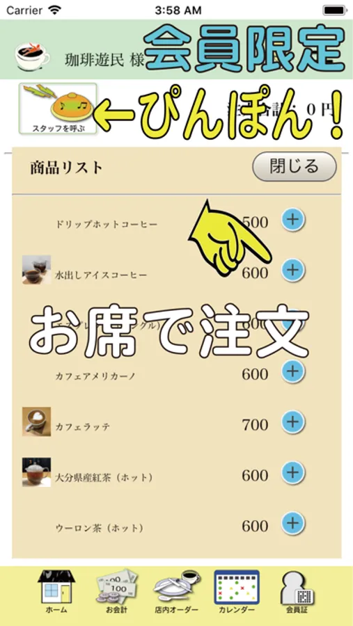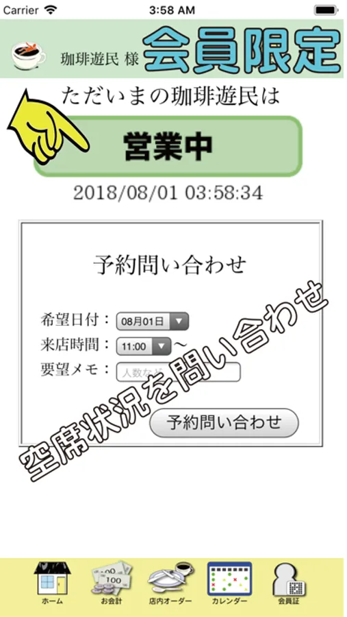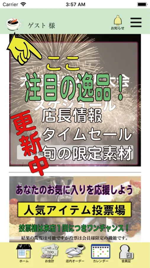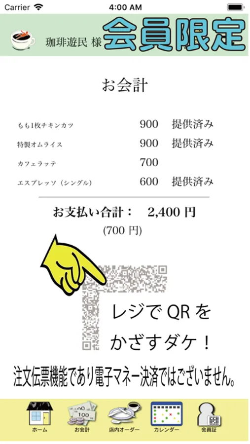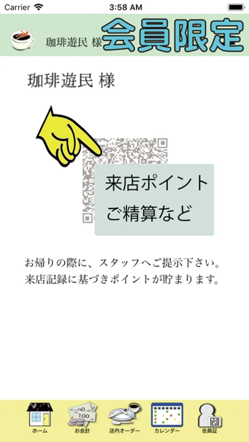 会員証提示で来店時や支払時にQRコードを読み取ります。