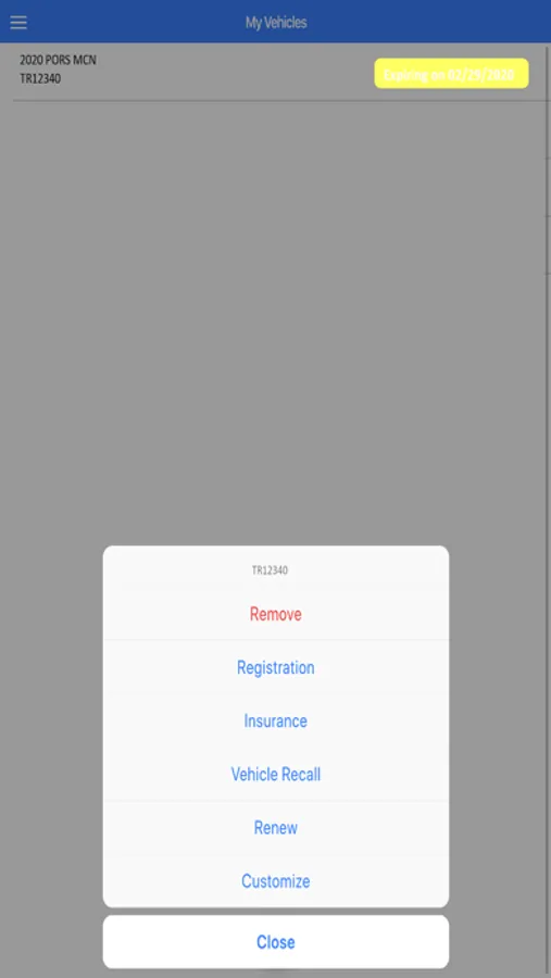 - Receive notifications of expiring vehicle registrations