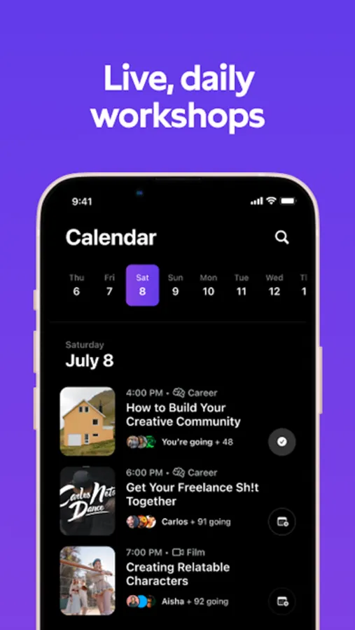 - Receive feedback, gain insights and collaborate with likeminded creators after class.