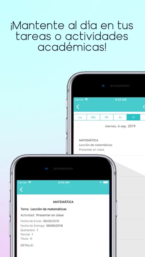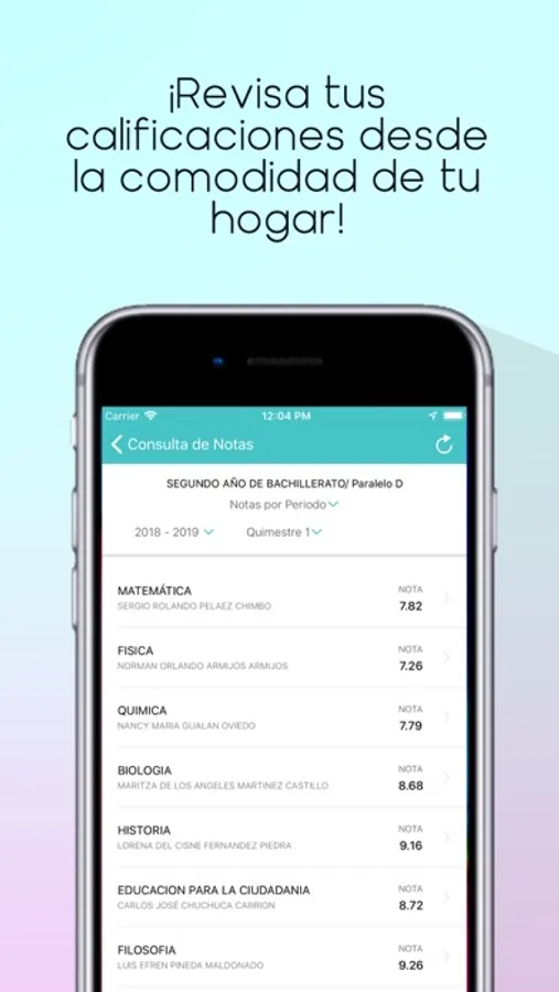 App para estudiantes y representantes. Permite la visualización de las calificaciones de estudiantes en cada periodo lectivo. Recibir comunicados, notificaciones para estudiantes y representantes. Revisión de tareas. Revisión de horarios de clase.