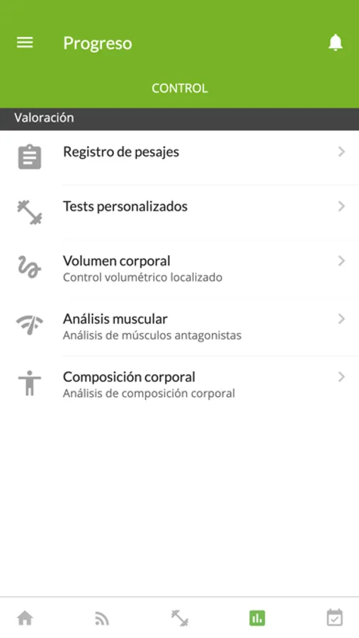 - Control médico: Análisis muscular, control de dimensiones y volumen corporal, composición corporal, presión arterial, frecuencia cardíaca, análisis segmentario de grasa y músculo.