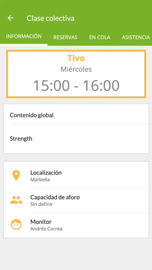 - Gestión de horarios y reserva de plaza en clases colectivas.
