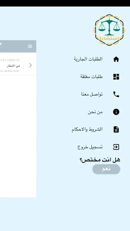 * التحاور المباشر مع المستشار بالكتابة والصوت ورفع اي مرفقات