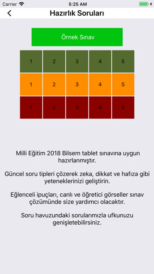 Bilsem sınavına hazırlık uygulamamız MEB 2018 Bilsem tablet uygulama sınavına uygun olarak hazırlanmıştır.
