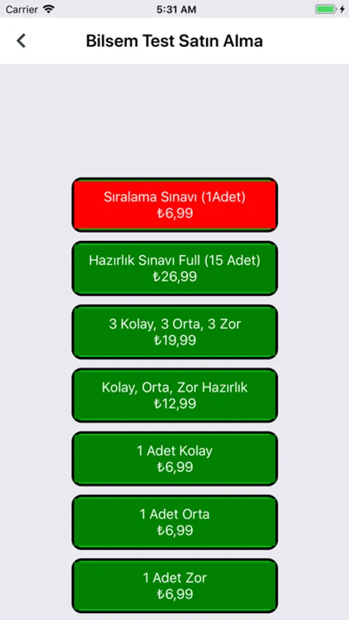 Ücretsiz 1 adet sıralama, biri ücretsiz 16 hazırlık sınavı içermektedir.