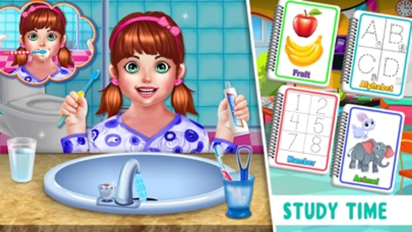 - Brushing teeth, toilet, bath, dress-up, breakfast activities