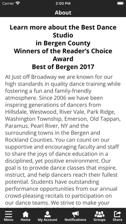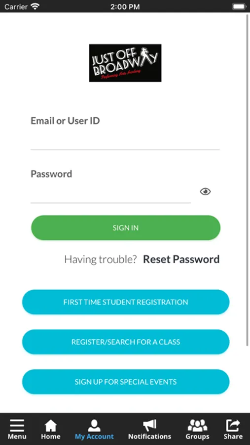The Just off Broadway app allows you to register for classes, parties and special events and more. The JOBA calendar, social media links, and contact information are also easily accessible from the app.