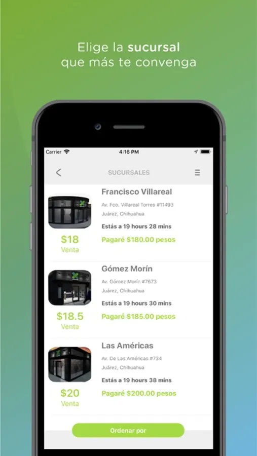 Podrás consultar el tipo de cambio de cada sucursal y decidir cuál es la que más te conviene.