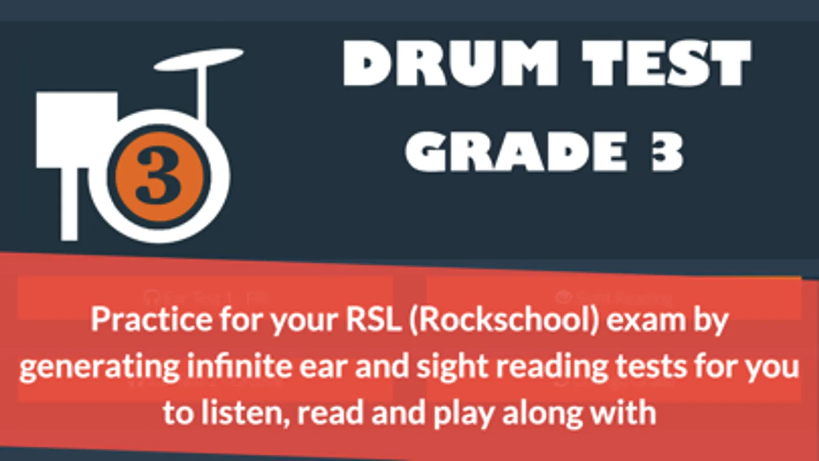 Practice for your RSL (Rockschool) Grades Debut, 1, 2 and 3 drum kit exams. This useful app will generate ear and sight reading tests for you to listen, read and play along with in preparation for your exam.