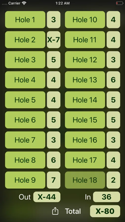 • Supports "X" scores like "X-5" if you pickup your ball. (Long-press on the counter button.)