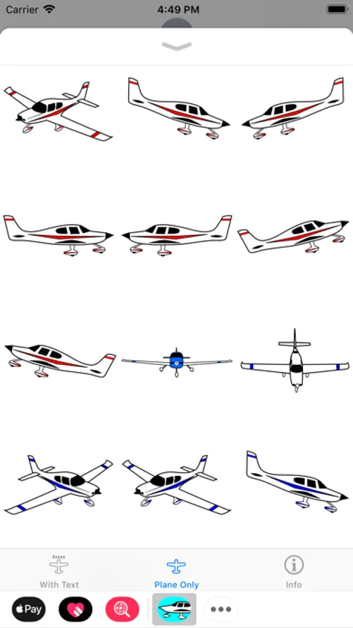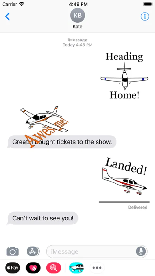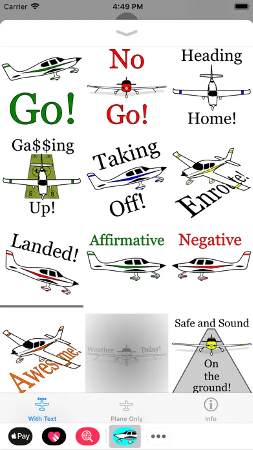 The sticker pack also includes stickers with just the plane and no text for those times when sending an airplane says it all.