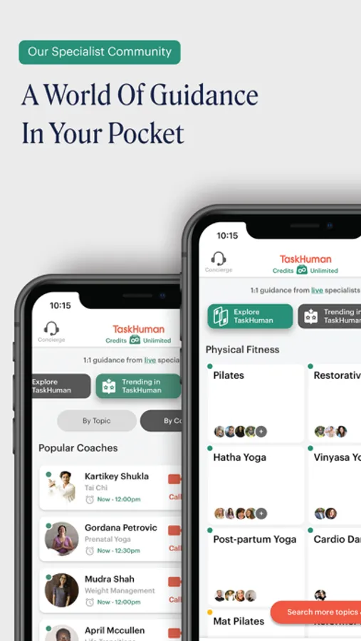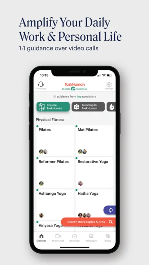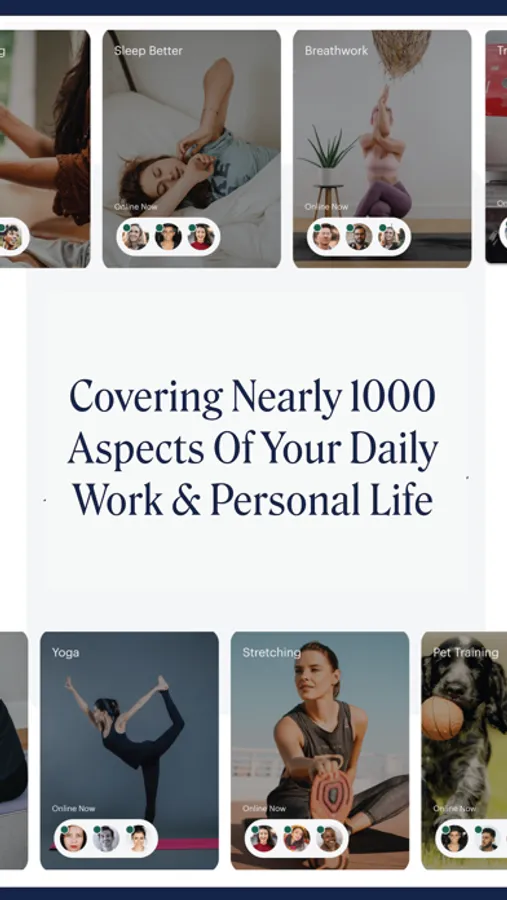 Amplify your work and personal life with 1:1 personalized guidance from LIVE specialists over video calls. Instantly discover and connect with the world’s most comprehensive global network of coaches, instructors, and specialists covering nearly 1000 aspects of your well-being, such as physical fitness, mental well-being, spiritual, emotional, financial, life & leadership coaching, and