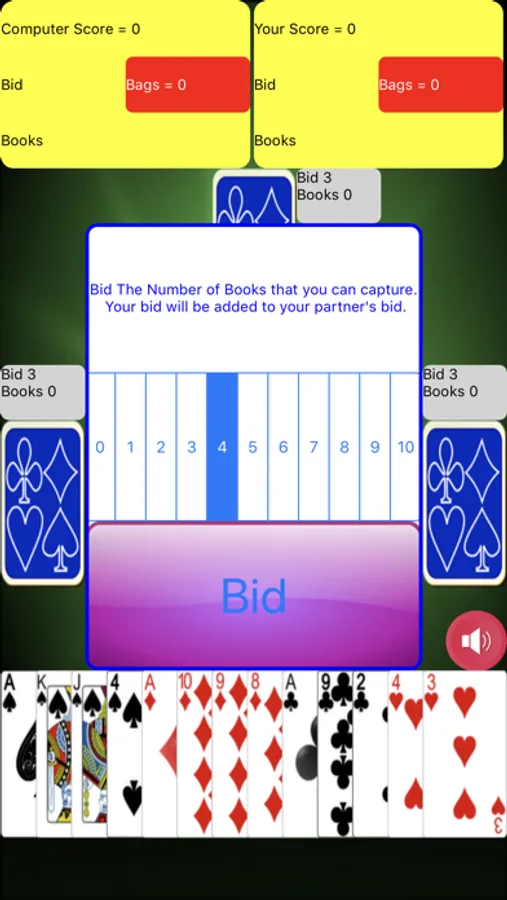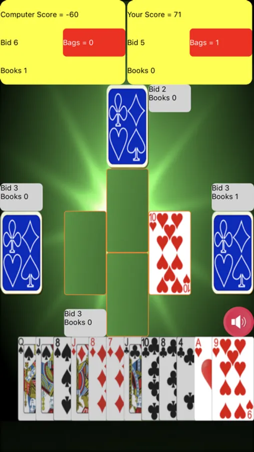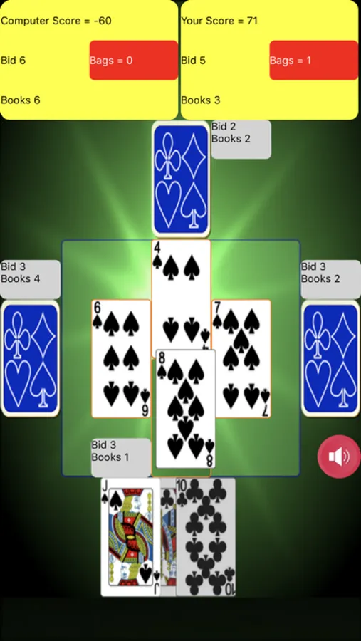 Play this Spades card game with all of the trimmings. This games includes all parts of Spades from: Nil Bids, Bags, Blind Bids and all. The option to include Jokers is there also. Enjoy this game in your down time and you won't be disappointed.