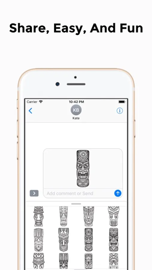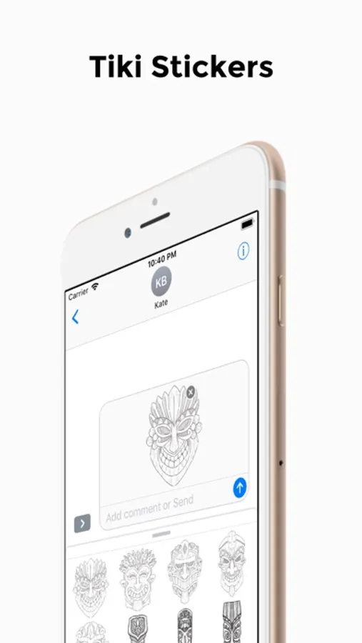 To use stickers in a conversation simply tap the sticker, which will place it in the text field and allow you to send it like a picture. The real fun happens when you use the second option: press your finger on a sticker, drag it out of the box, and place it on an earlier entry in your message history. These options allow you to annotate text, photos, or other stickers that have been sent in the past with your sticker of choice.