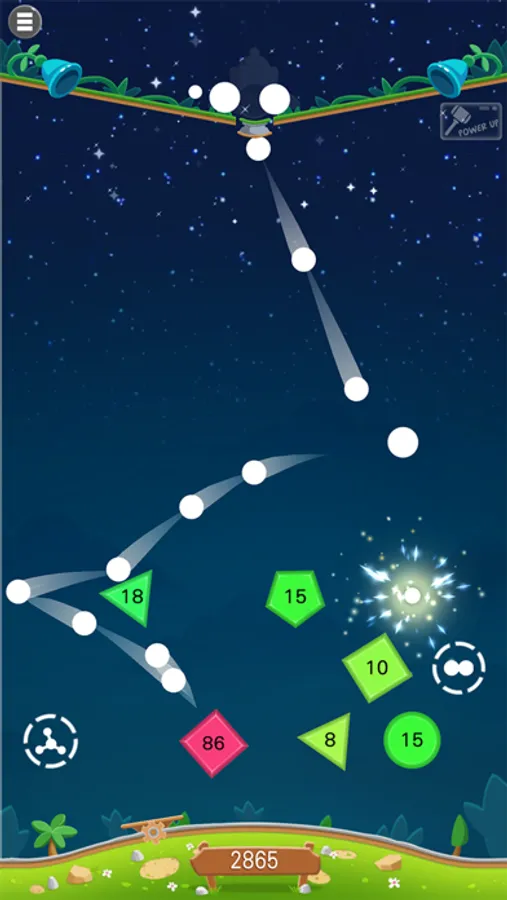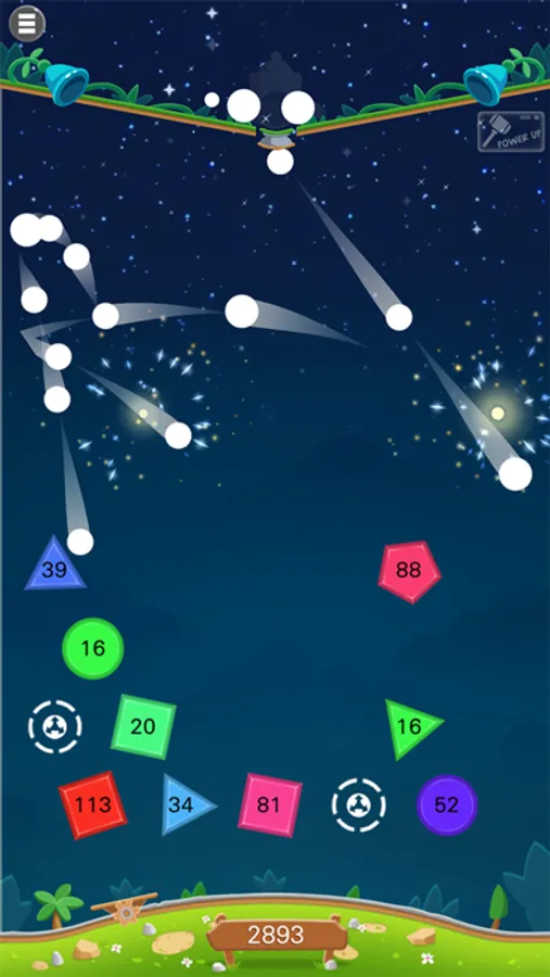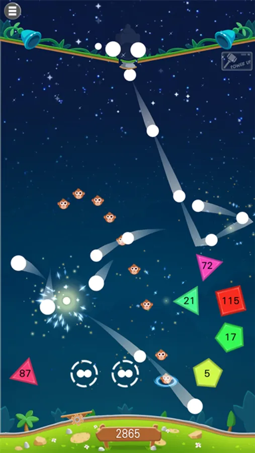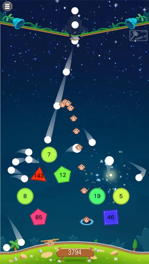 Tap your finger and shoot balls to make them bounce and break the geometry bricks. Try to break as many geometry bricks as possible before they get to the top. Think strategically and collect the props to make you break easily. Little monkeys may pop up to help;)