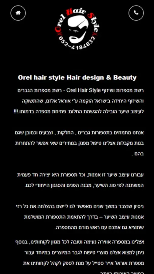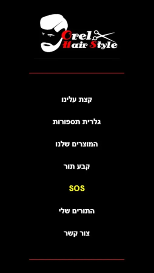 האפליקציה הינה עבור Orel Hair Style - רשת מספרות הגברים והשיזוף היחידה בישראל. האפליקציה מספקת פרטים כלליים על המוצרים והשירותים, ומאפשרת קביעת תור בזמן אמת, צפייה בתורים קיימים, ויצירת קשר מידי (SOS) עם הרשת לצורך קביעת תור דחוף.
