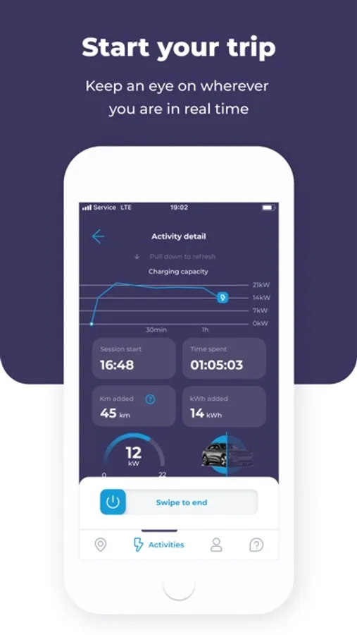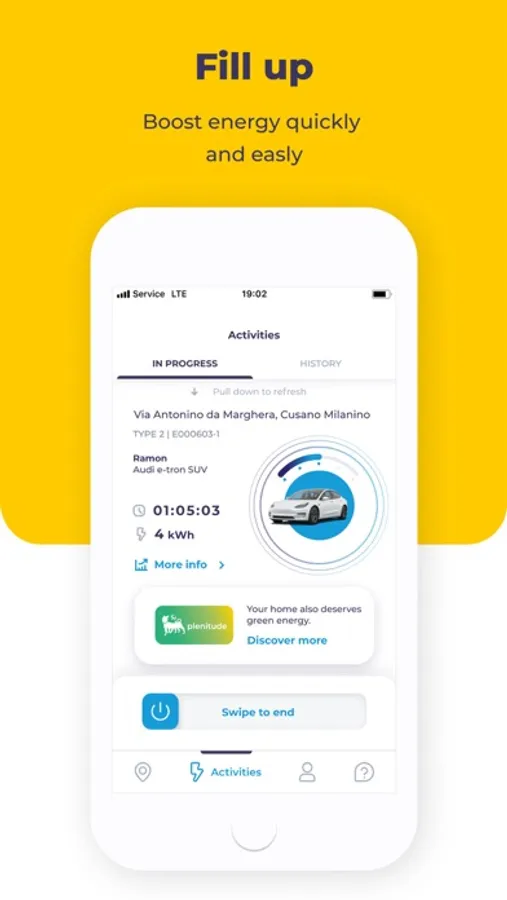 2. Monitor your electric recharges in real time: select the charging station and start recharging to get all the information you need and check the progress.