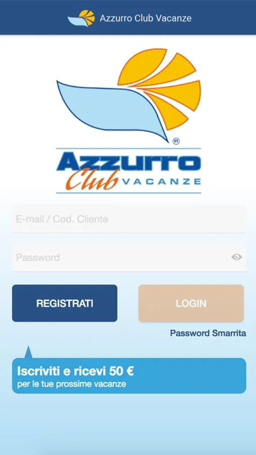 Se ancora non sei in possesso delle credenziali per accedere all'Applicazione richiedile subito sul sito: www.azzurroclubvacanze.it. Le riceverai immediatamente insieme ad un primo bonus di € 50,00 utilizzabili subito prenotando la tua prossima vacanza.
