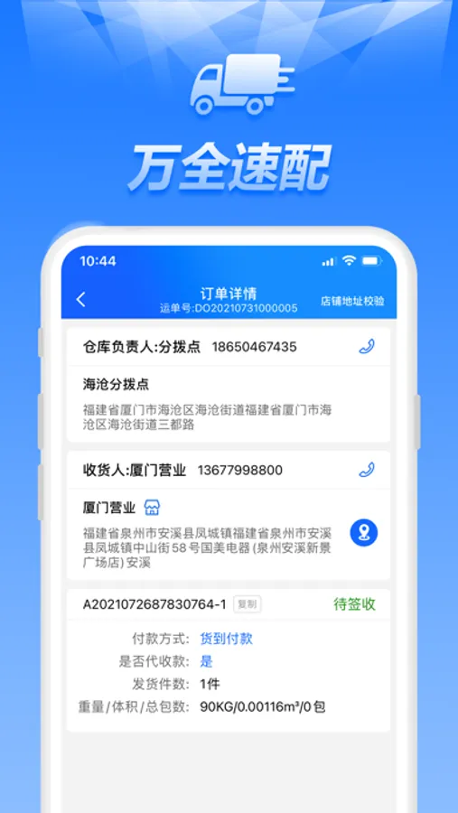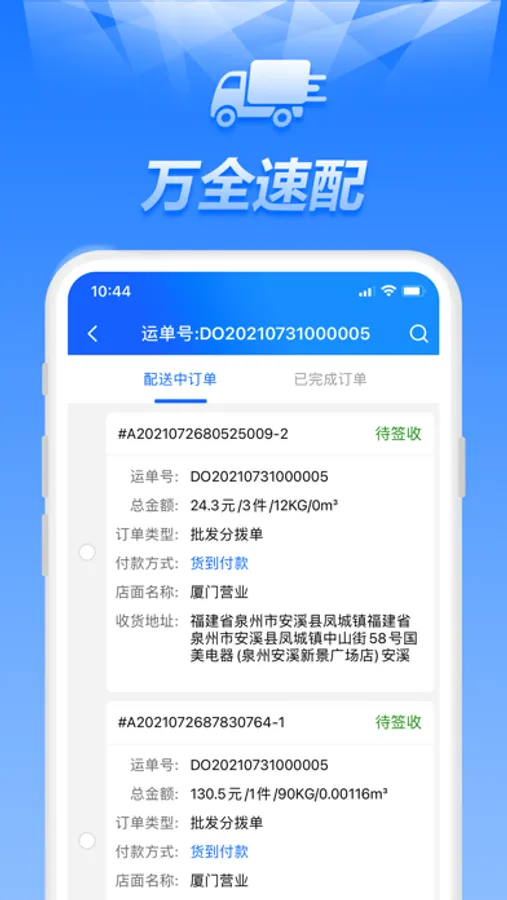 万全商城司机送货业务APP,主要用于司机派单接收、装货确认、客户签收图片上传,签收商品数量录入等功能。