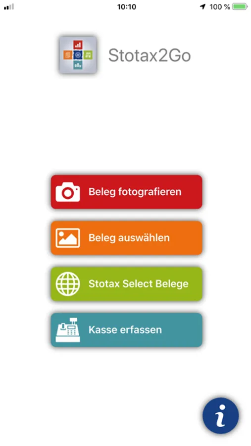 Übermitteln Sie Ihre Belege DSGVO-konform, einfach und schnell zu Stotax Select. Sie können Ihre Belege direkt mit der Kamera aufnehmen, auf Ihre bestehenden Fotos zugreifen oder sie aus Dritt-Apps übergeben.