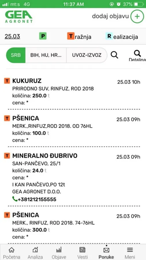 GEA AgroNet je vodeći sistem robnih i transportnih informacija koji posluje punih 16 godina i na jednom mestu objedinjuje informacije iz Srbije, Bosne i Hercegovine, Hrvatske, Makedonije, Crne Gore i Mađarske.