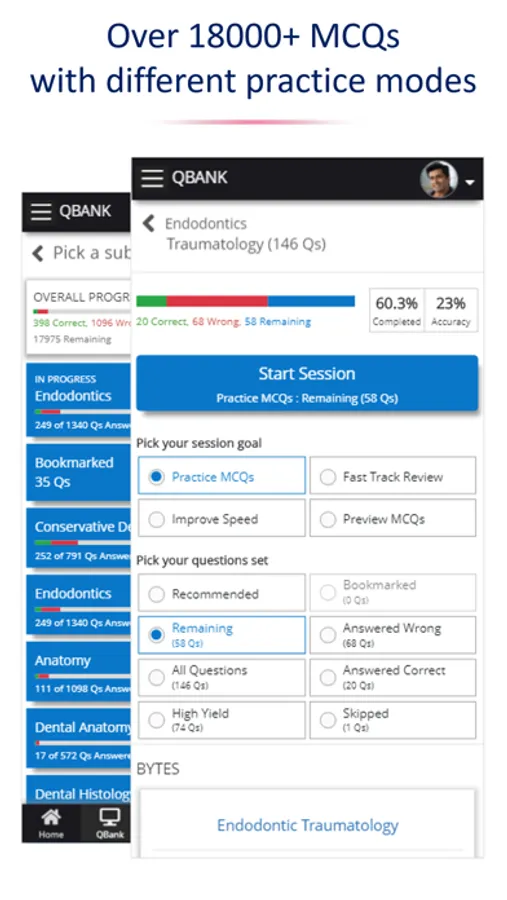 c) 400+ tasks with explanation videos (Topics Covered: Operative Dentistry, Endodontics, General Anatomy, Oral Anatomy, Oral Histology, General Pathology, Complete Denture, Fixed Partial Denture, Removable Partial Denture, Pharmacology, Pedodontics, Periodontics, Community Dentistry, Dental Materials, Oral Radiology, Physiology, Oral Pathology And Medicine, Biochemistry, Microbiology, General Surgery, General Medicine, Orthodontics, Oral And Maxillofacial Surgery).
