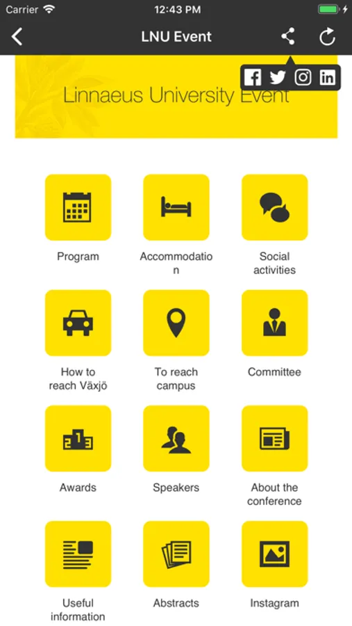 App för deltagare på evenemang arrangerade av Linnéuniversitetet.