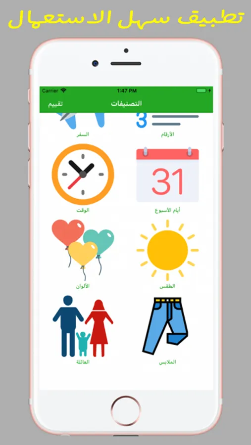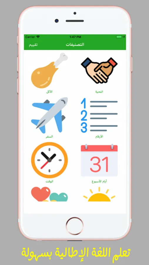 ـ تطبيق تعلم اللغة الاطالية به عدة اقسام للتعلم