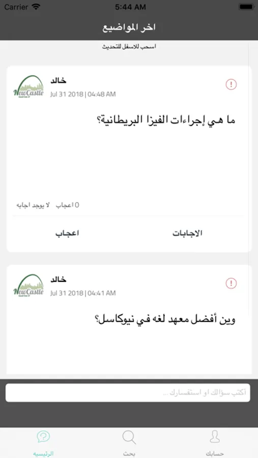 تطبيق لطرح الاسئله والاستفسارات ومشاركة المعلومات والخبرات المتعلقه بالدراسه والسكن وكل ما يهم الطلاب الدارسين في مدينة نيوكاسل وفي المملكه المتحدة بشكل عام.