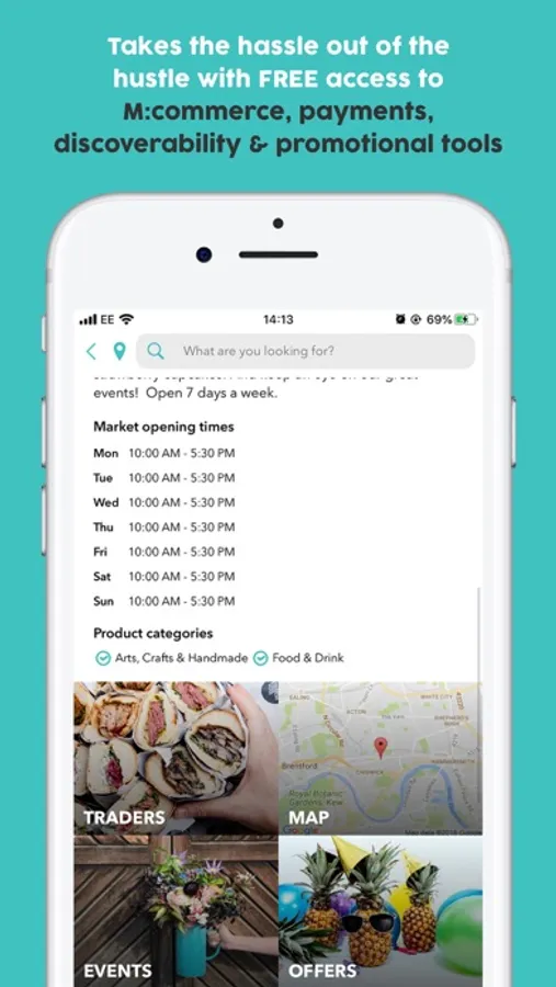 Discover markets, traders, events and offers on the first integrated retail solution for the markets industry. We want more people to get #downthemarket so our app has all the tools you need to find local products and support small, straight from your phone. We provide a FREE business toolkit to markets and traders including a digital profile, e:commerce, mobile payments & digital marketing solutions.
